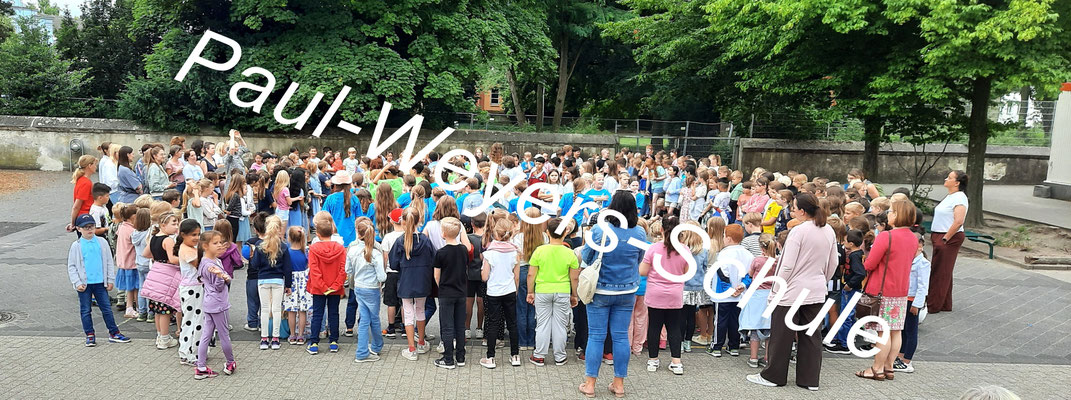 Am letzten Schultag fand die Verabschiedung unserer Viertklässler auf dem Schulhof mit einem gemeinsamen Singen statt. Alle Klassen der PWS kamen zusammen. Gemeinsam wurden Ferien- und Sommerlieder gesungen. Die Kinder der 4b hatten sogar noch ein Lied eingeübt, welches sie zum Abschluss ihrer Grundschulzeit den anderen Klassen vorsangen.